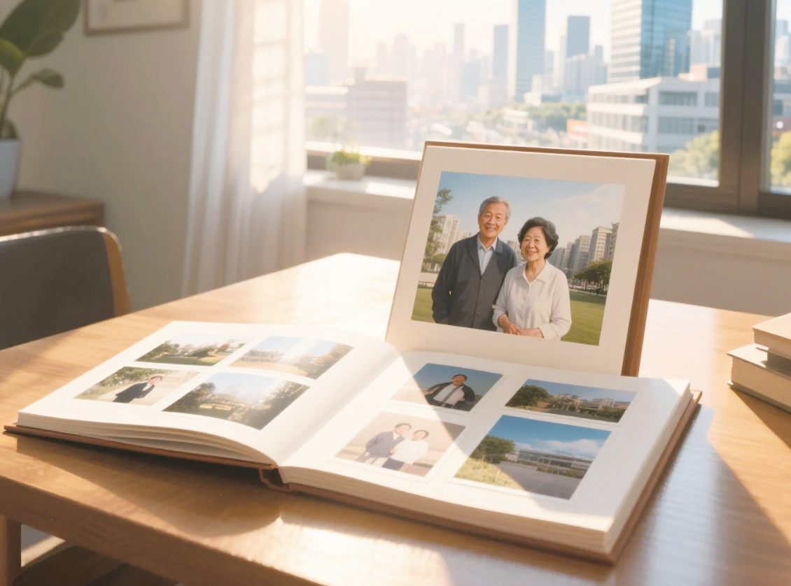 再往后翻,便是近十来年的照片了。背景陡然间复杂、喧嚣起来。父母站在摩天大楼的观景台上,他们身后,是纵横交错的高架桥,是一片望不到边的、钢筋水泥的森林。这些照片,像素极高,色彩饱满得几乎要溢出来。父母笑容里添了慈祥与满足,有时还会学着年轻人的样子,比个手势。他们成了这座巨变的城市的见证者,也成了安居于其中最普通的居民。从那张黑白照片里的土路与平房,到眼前这流光溢彩的都市,其间不过几十年的光景。这变迁,不是缓缓流淌的溪水,倒像是春潮带雨,来得迅疾而磅礴。