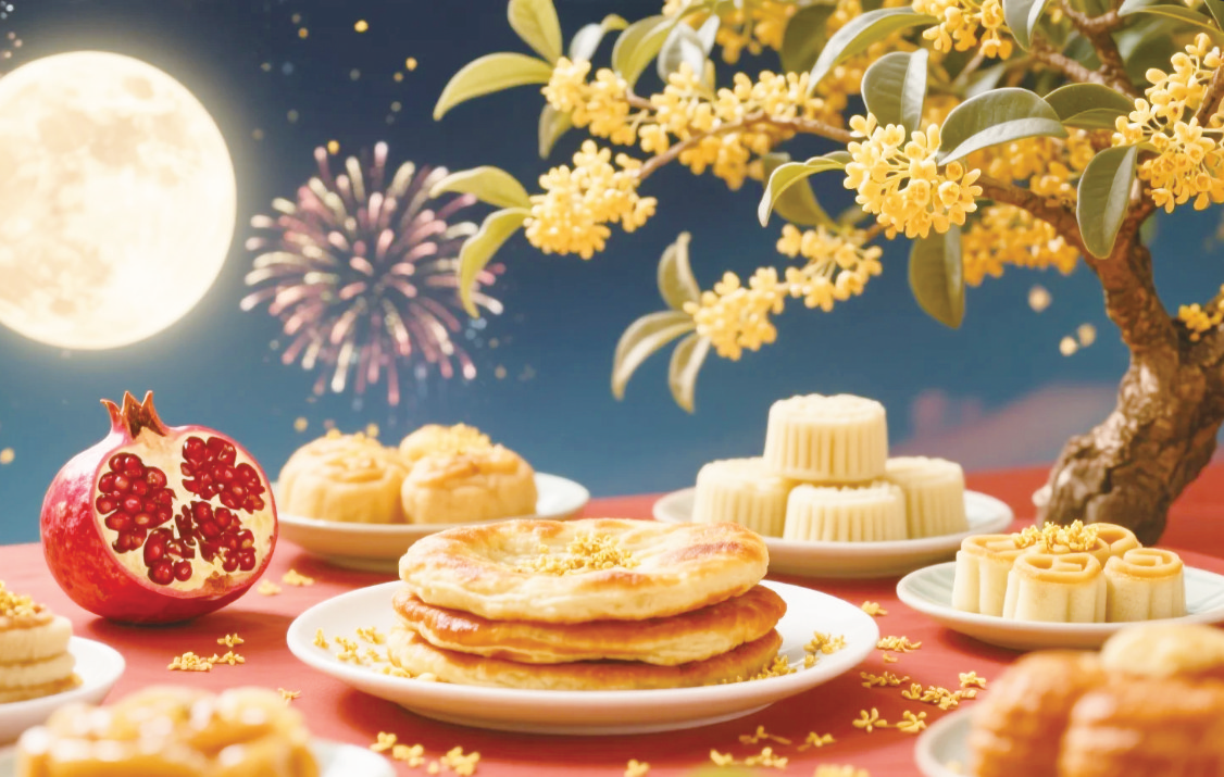 面团膨胀到两倍大时,我收到了妹妹的微信照片。她在国外的公寓里举着自制的月饼,背后窗台上插着两面小国旗。“哥,我复刻了妈的糖油饼,虽然像曲奇饼干。”她说那里正是黄昏,留学生们约好去当地河边看月亮。